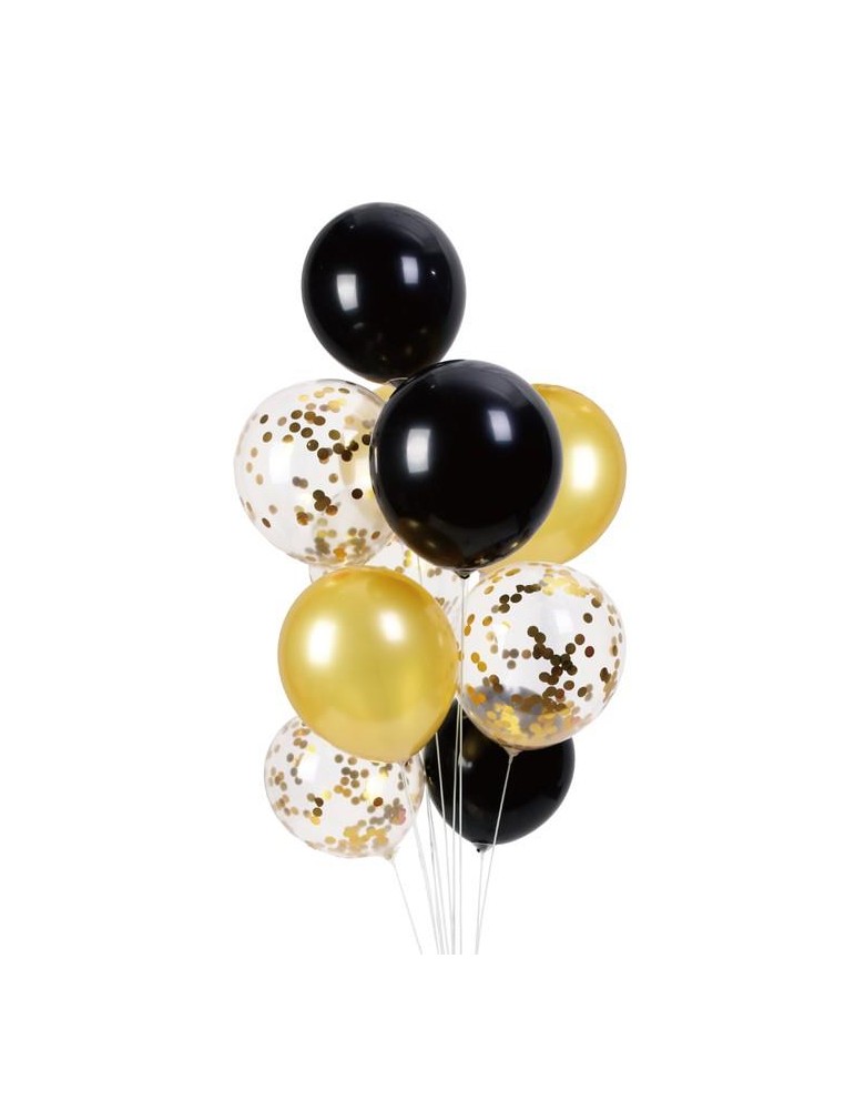 Balony złoto-czarne z konfetti 400865 zestaw10 szt, 12 cali