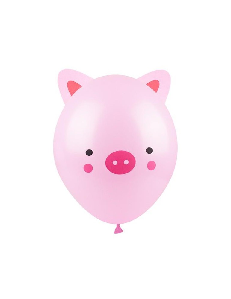 Zestaw 3 balonów w kształcie świnki (w zestawie znajdują się trzy balony z twarzą świnki oraz papierowe, samoprzylepne wzory uszu do wycięcia samodzielnie).