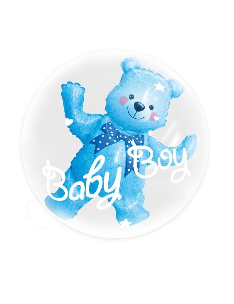 Balon posiada dwie komory do pompowania, jedna pompuje balona Misia, druga transparentny balon z napisem Baby Boy. Jest to tzw. "balon w balonie"