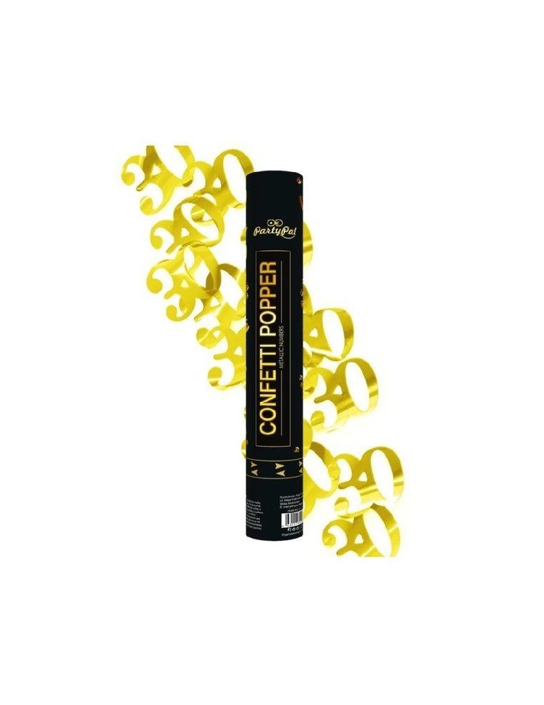 Tuba strzelająca metalizowanymi,złotymi cyframi 30