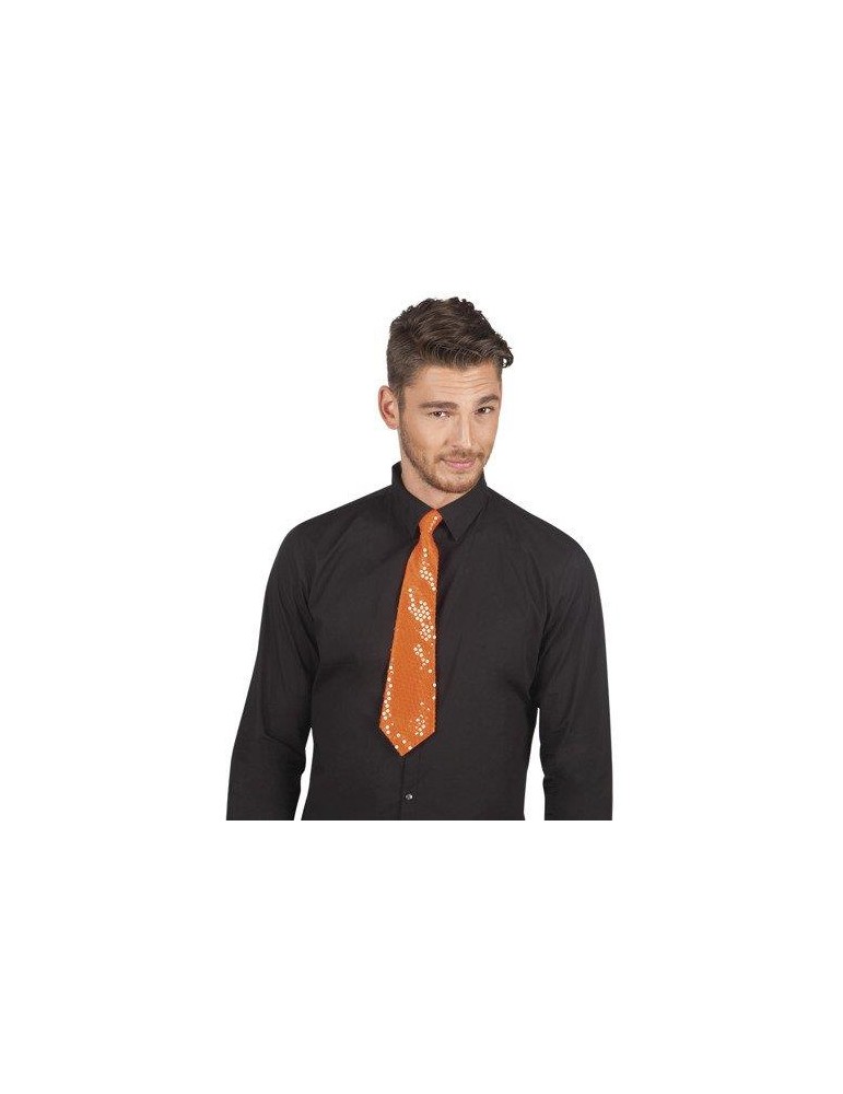 Krawat z cekinami POMARAŃCZOWY 52950P 40cm