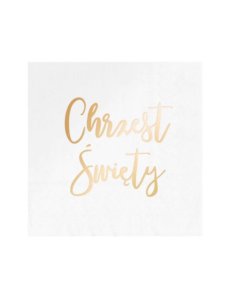Białe serwetki ze złotym napisem Chrzest Święty.