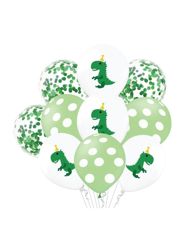 Balony Dinozaury 10szt 400889 na urodziny Konfetti , Zielone w kropki