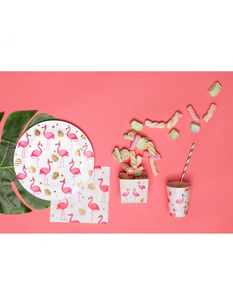 Serwetki papierowe z nadrukiem flamingów.