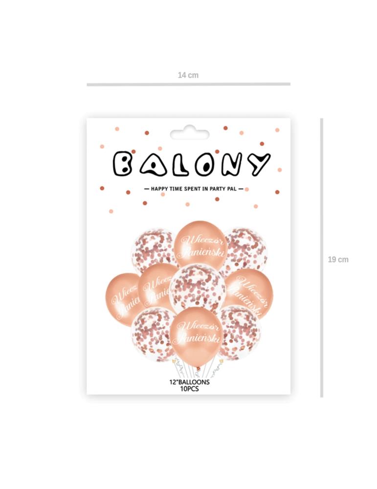 - 5 balonów lateksowych w kolorze rose gold z nadrukiem Wieczór Panieński w rozmiarze 12 cali,