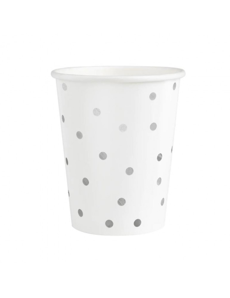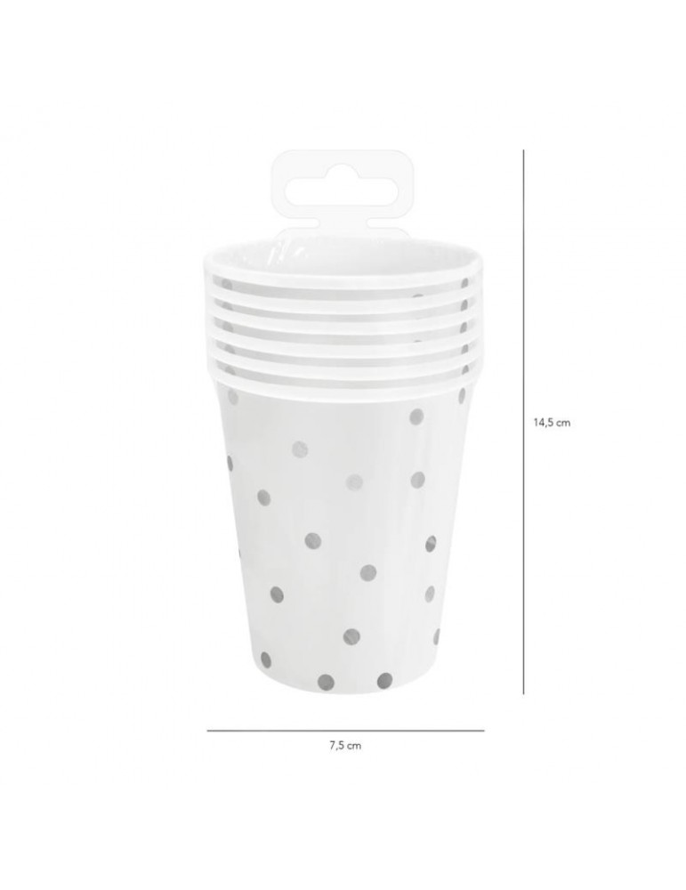Kubeczki Białe Srebne kropki 6szt 510865 papierowy jednorazowe 220ml wieczór panieński urodziny eventy przyjęcia party