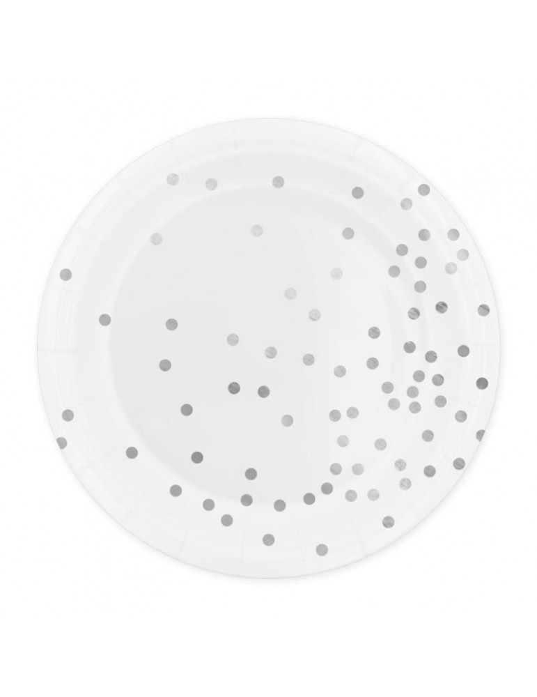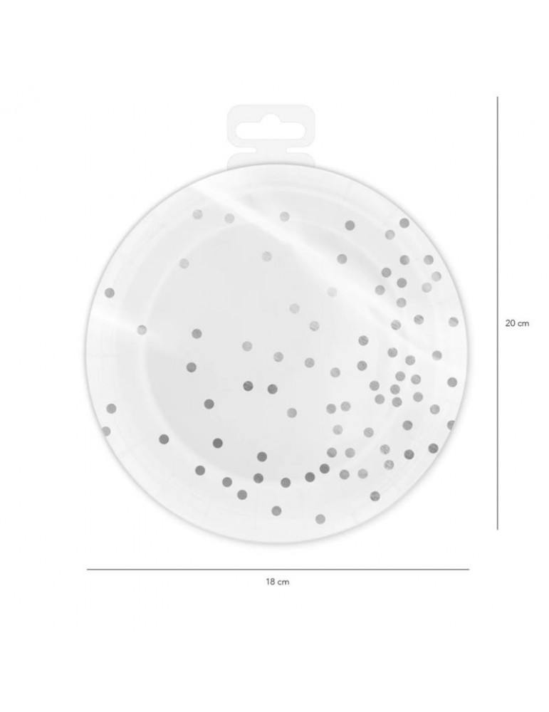 Talerzyki Białe Srebne Kropki 510864 6szt. wieczór panieński przyjęcia 18cm
