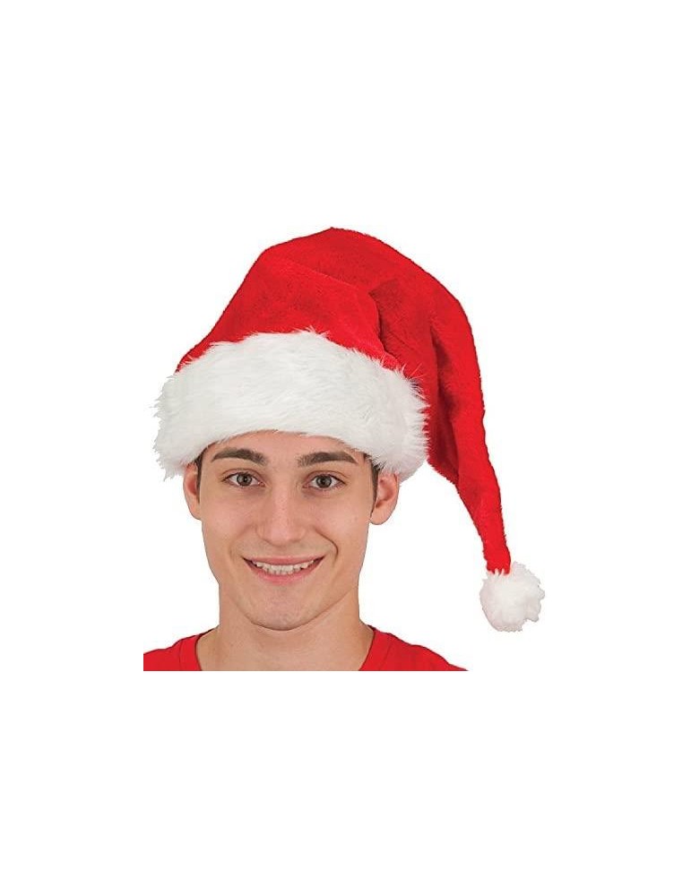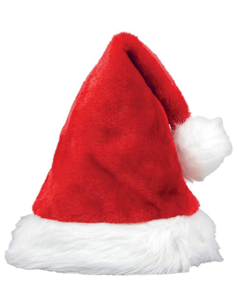 Czapka Mikołaja wykonana z grubszego pluszu z futerkiem.