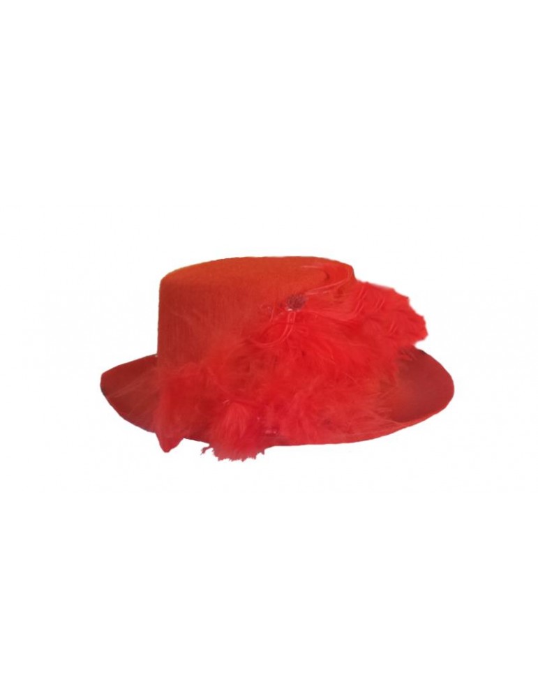 Kapelusik ozdobny z czerwonymi piórkami