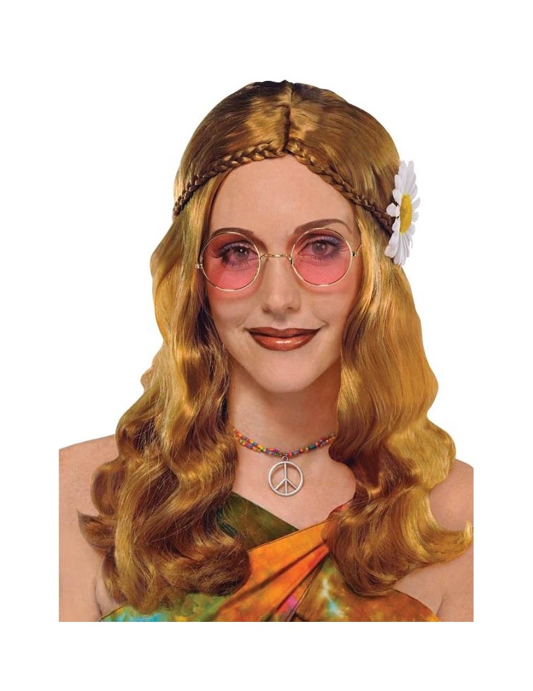 Peruka Męska Czarna Hipisa 86368 z Warkoczykami Flower Power
