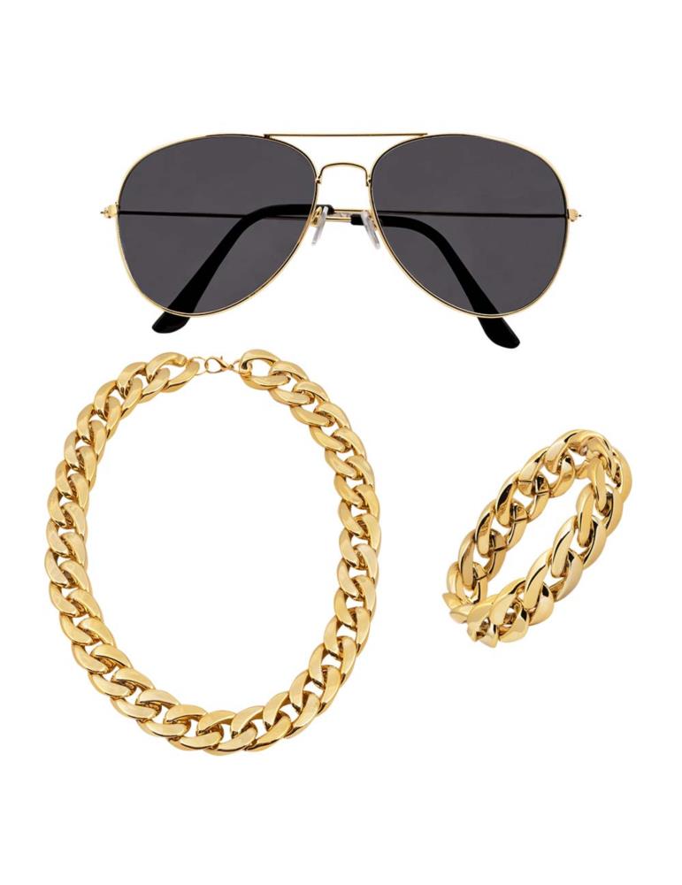 Zestaw dodatków do stroju np. rapera, pimpa lub alfonsa idealny na zabawy w stylu lat 80-tych