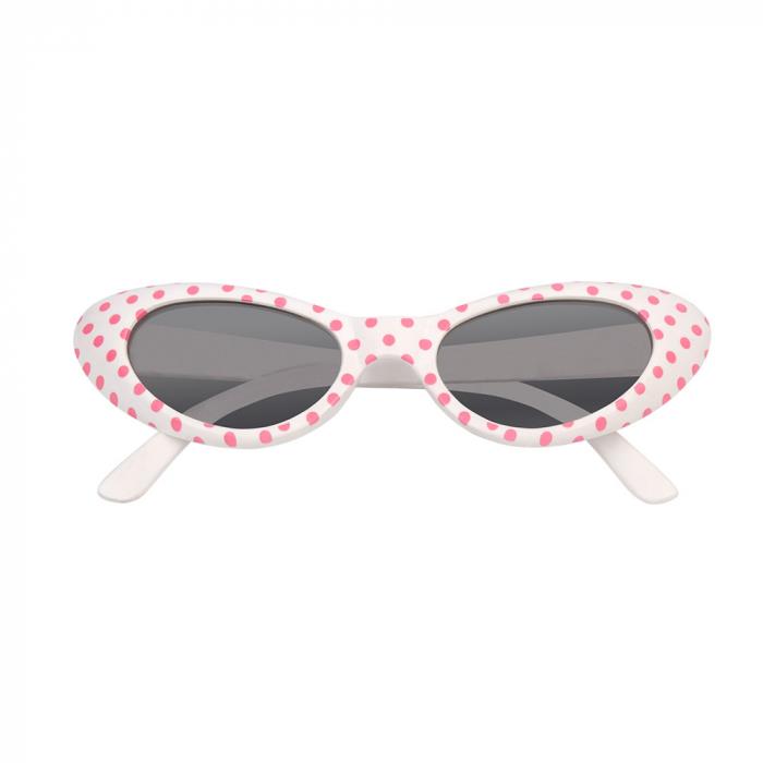 Okulary pin-up Białe Kocie 02551BR Lata 70-te 50-te w różowe kropki
