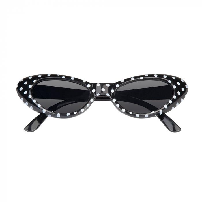 Okulary pin-up Czarne Kocie 02551CB Lata 70-te 50-te w białe kropki