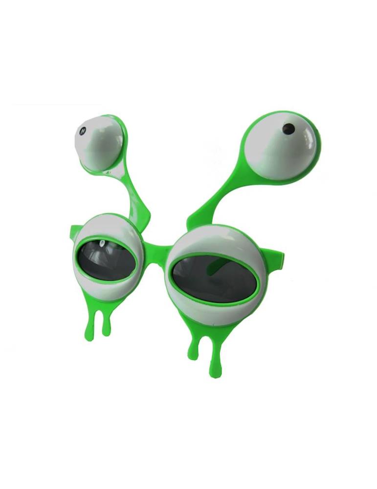 Zielone okulary z oczami kosmity, z których wychodzą czułki zakończone gałkami ocznymi.