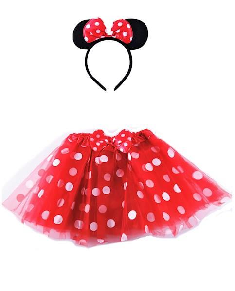 Strój Myszka Zestaw w kropki Y2622 czerwona spódniczka z opaską myszki