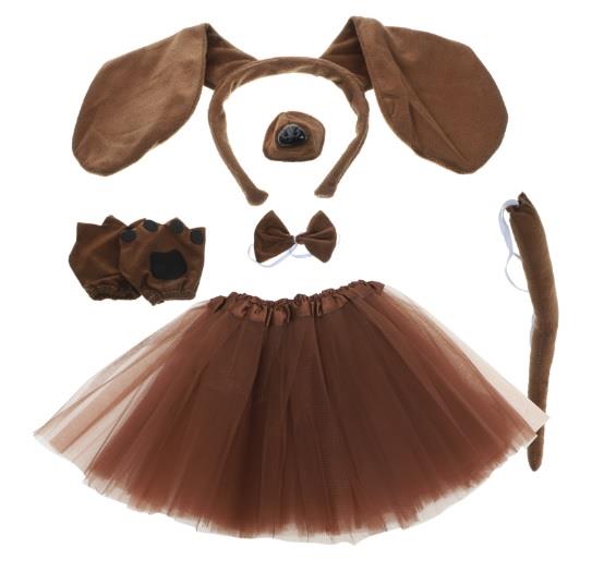 ZESTAW Strój Piesek Brązowy DZD24295 6el pieska spódnica TuTu łapki ogon mucha nos opaska z uszami