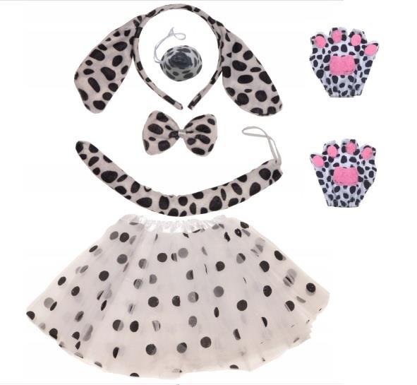 Strój Piesek Pies Dalmatyńczyk DZD24285 Zestaw 6el pieska spódnica TuTu opaska ogon rękawiczki nos mucha