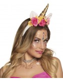 Opaska unicorna z różowym rogiem i złotą nitką,uszy pokryte cekinami zmieniają kolor srebny lub różowy.