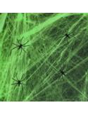 Pajęczyna dekoracyjna Halloween w kolorze fioletowym z pająkami.