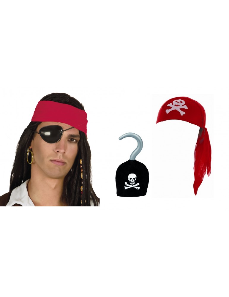 Zestaw Pirata dla dorosłych Czapka Kolczyk Oko Hak 4el MK271