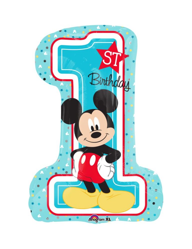 Balon foliowy super kształt Mickey 1 urodziny. okrągły.
