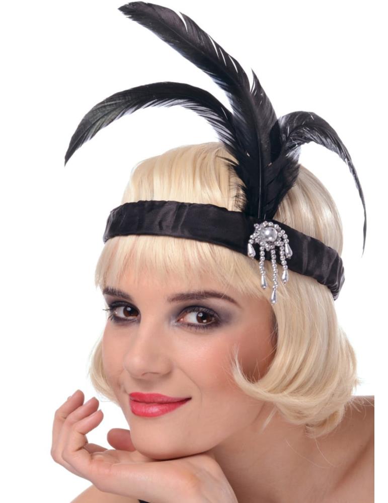 Czarna opaska lata XX z piórkami to jeden z ważniejszych elementów stroju w stylu retro,charleston.