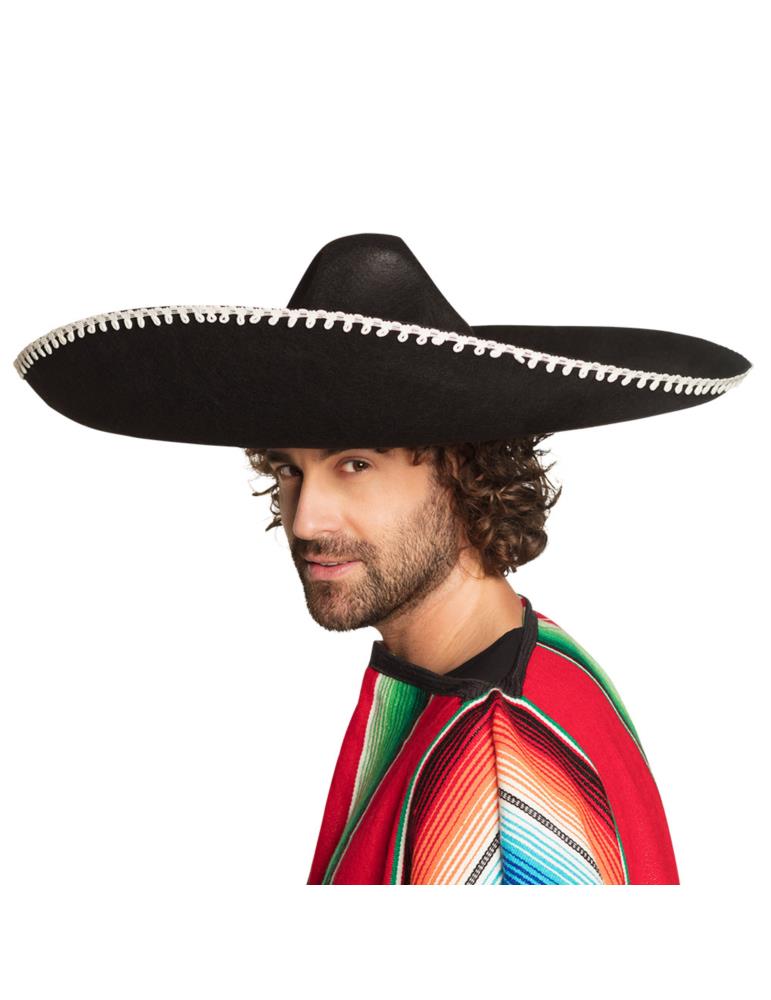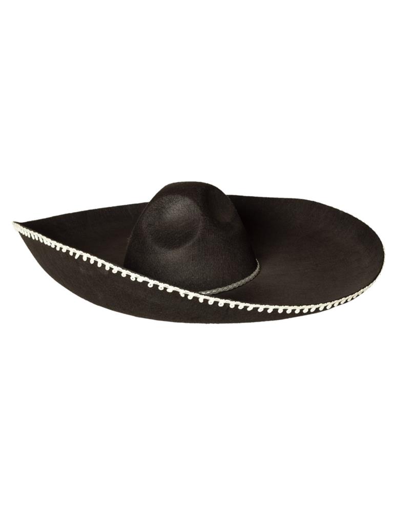 Meksykański, czarny kapelusz z dużym rondem obszytym białą tasiemką.