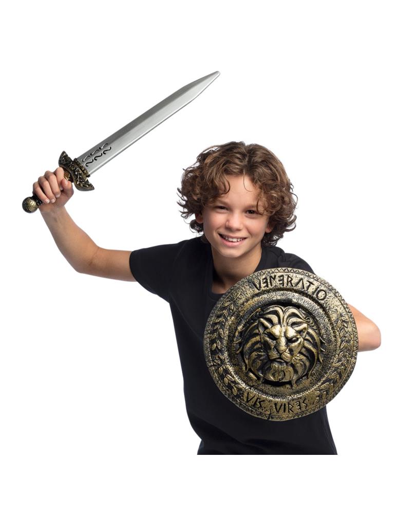 Miecz o długości 47 cm i tarcza o średnicy 30 cm sprawią, że każde dziecko poczuje się jak bohater bajki. Miecze mają stylową złotą rękojeść, a na tarczy dumnie prezentuje się głowa lwa. To nie tylko zestaw broni, to esencja fajnej zabawy!