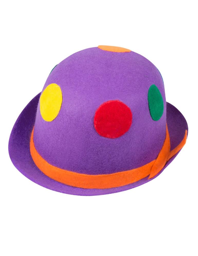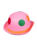 Melonik wykonany z usztywnionego filcu ozdobiony kolorowymi kropkami i czerwoną obwódką