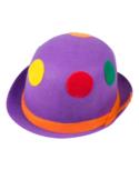 Melonik wykonany z usztywnionego filcu ozdobiony kolorowymi kropkami i czerwoną obwódką