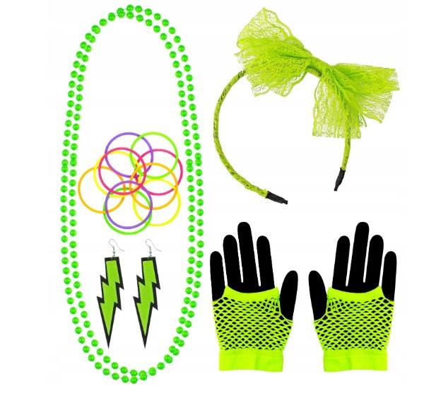 Zestaw Disco Zielony Neonowy 29364W Lata 80-te PRL Retro naszyjnik opaska bransoletki kolczyki rękawiczki