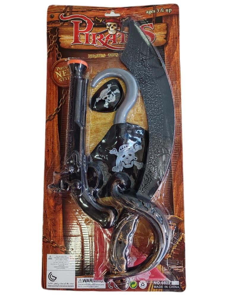 Zestaw Pirata z Szablą PA025 Pistoletem Hakiem Bandamką i Opaską na Oko