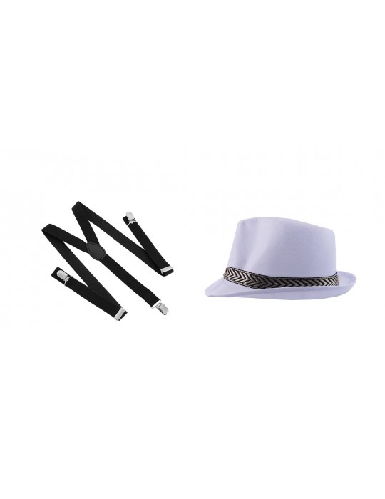 Zestaw Wielki Gatsbye Lata XX Biały Kapelusz plus Szelki 2el MK668