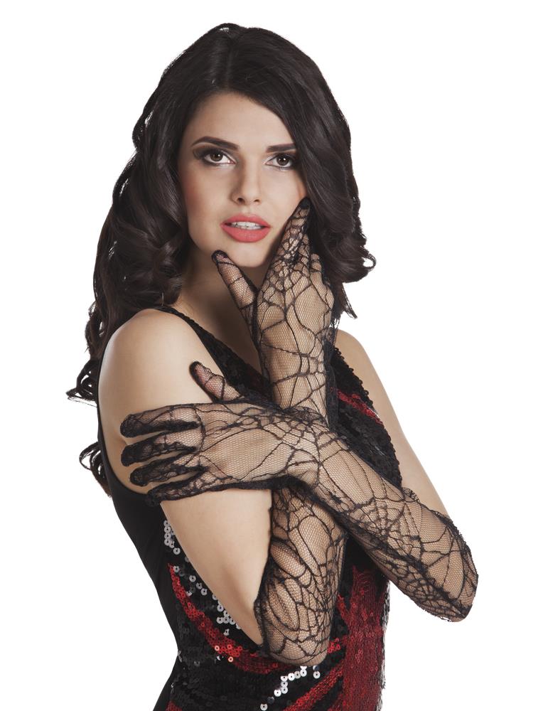 Rękawiczki z cienkiej wytrzymałej siateczki z naszytą czarnąpajęczyną.