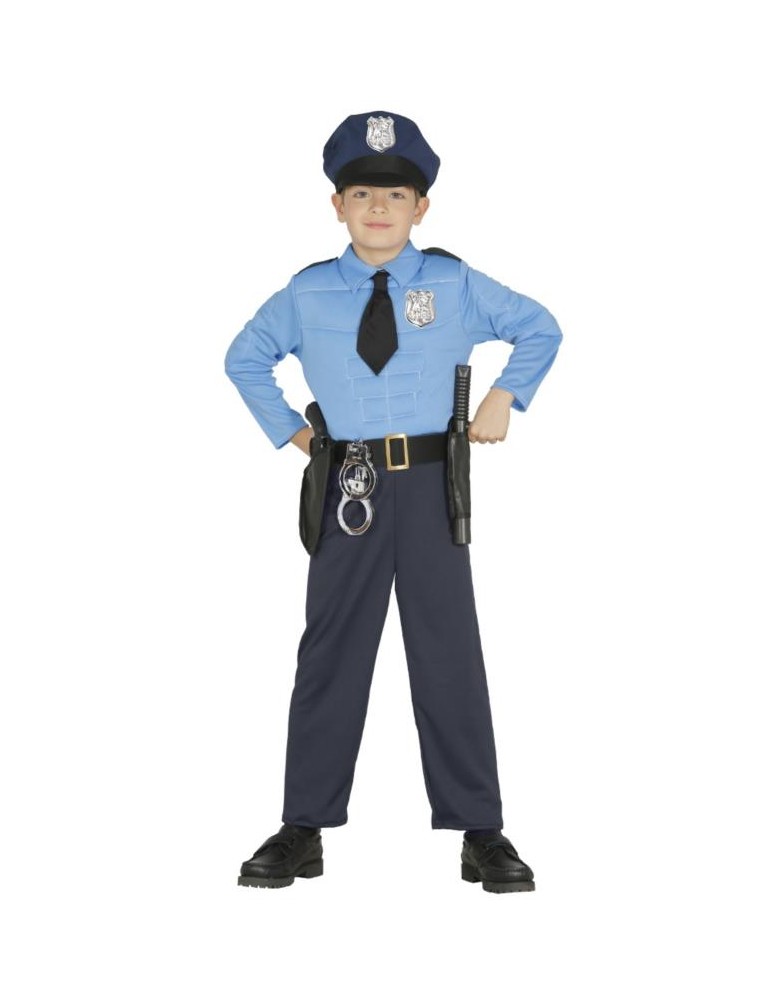W skład stroju wchodzi:kombinezon policjanta, czapka na głowę oraz pasek.