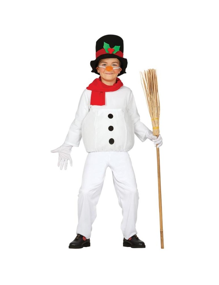 W skład stroju wchodzi biała koszula z imitacją brzuszka z czarnymi guzikami, białe