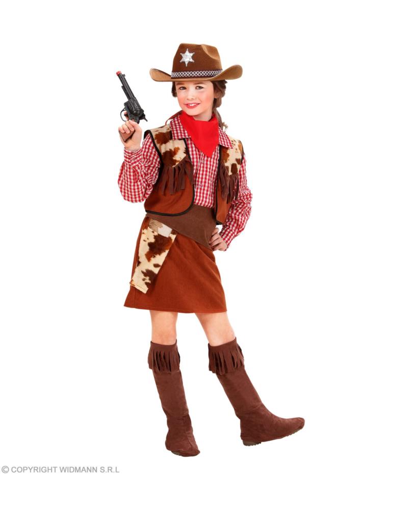 Strój kowbojki w kolorze brązowym, to zestaw, który z pewnością spełni oczekiwania małych miłośników Dzikiego Zachodu.