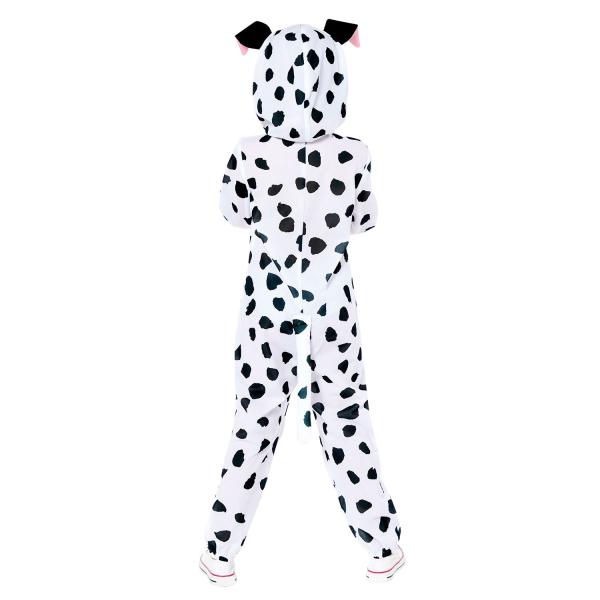 Pluszowy kombinezon dalmatyńczyka dla dzieci. Miękki, wygodny i łatwy do założenia strój zwierzątko, piesek dalmatyńczyk.