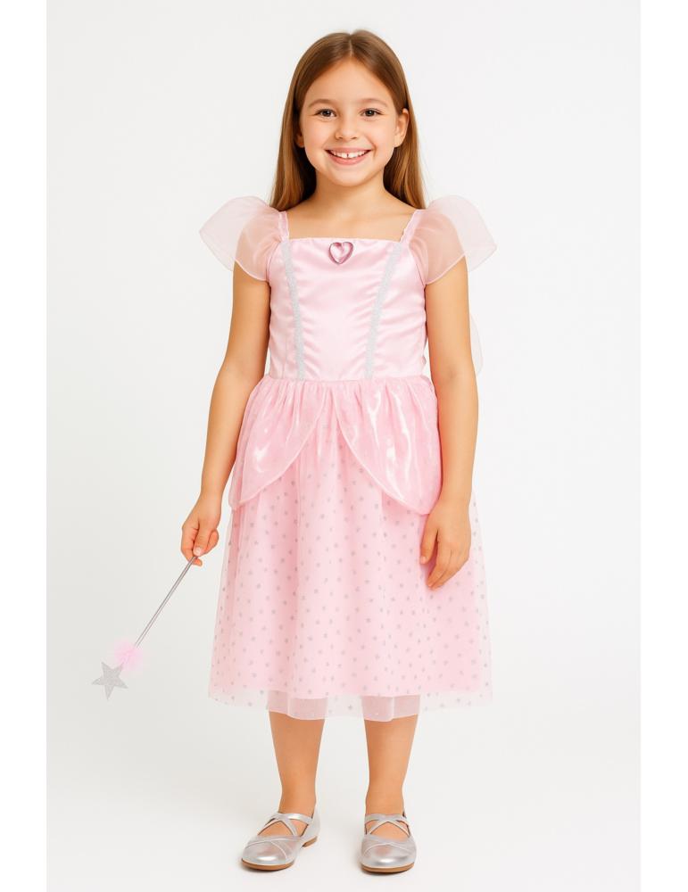 W skład stroju wchodzi: DŁUGA RÓŻOWA SUKIENKA BEZ RĘKAWKÓW.