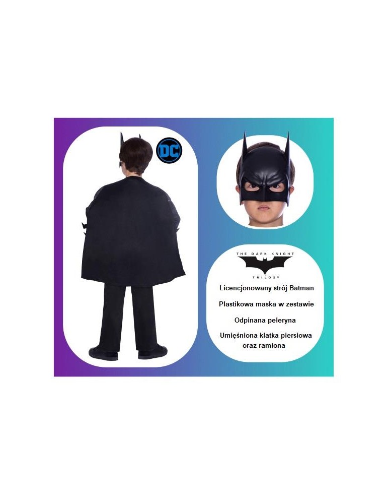 Licencjonowany strój Bratman Dark Knight z peleryną i maską to świetny pomysł nie tylko na bal karnawałowy ale i brdzo fajny pomysł na prezent
