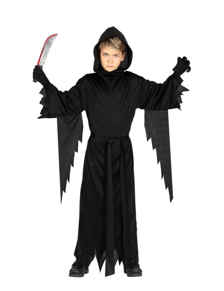Strój Czarny Upiór Lux ST792 146/152 H kosiarzalloween Krzyk nożownik z kapturem peleryna potwór kosiarz