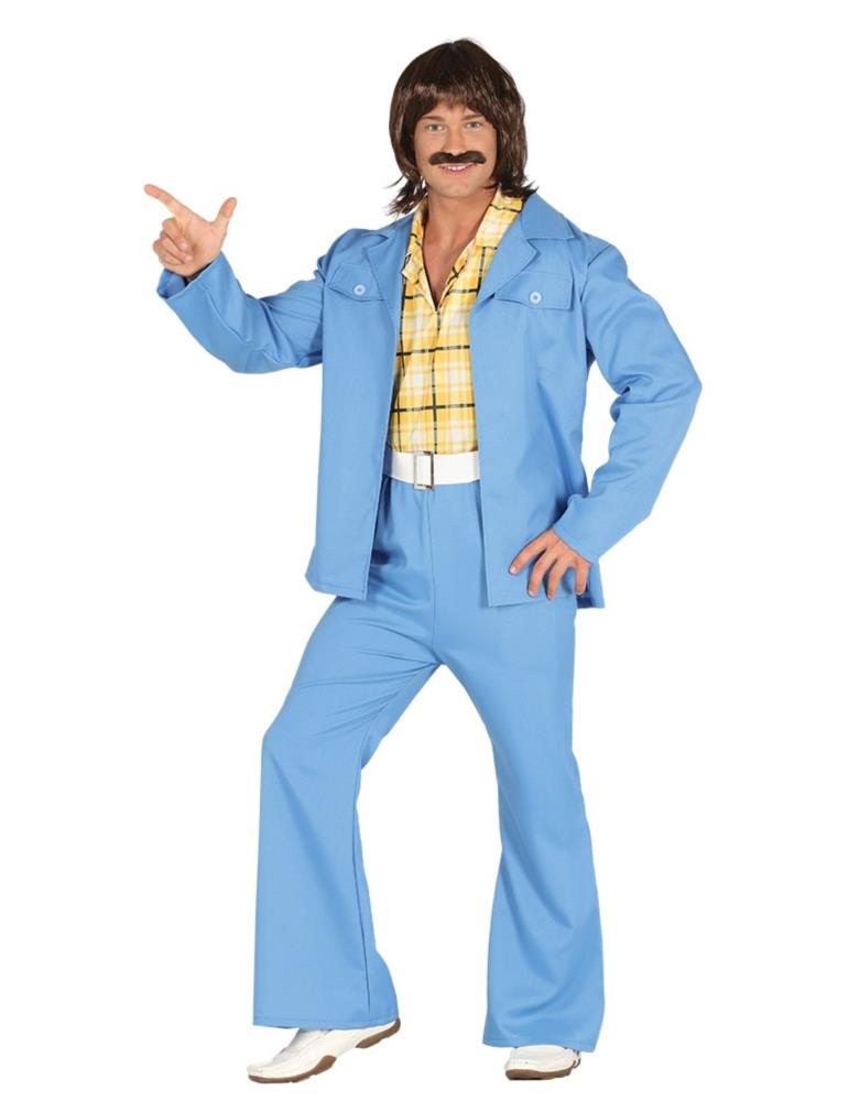 W skład przebrania wchodzi niebieska marynarka, spodnie oraz przód od koszuli