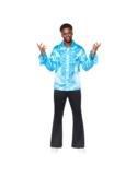 Zestaw zawiera kombinezon z detalami muskulatury, efektowną pelerynę oraz dopasowaną maskę,
