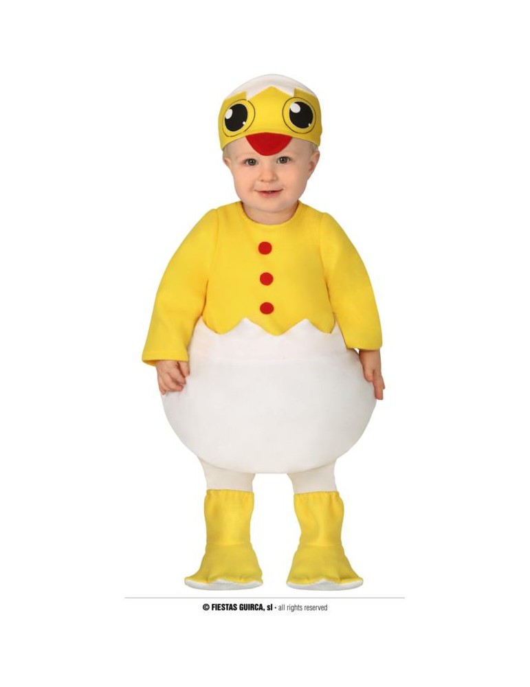 Żółto-biała tunika zapinana z tyłu na rzep. Wygląda jakby kurczaczek wykluł się z jajeczka.