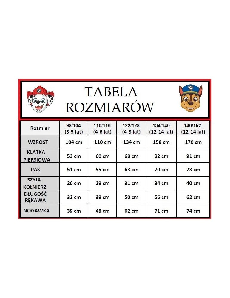 Strój Psi Patrol CHASE 98/104 9909117 BZ