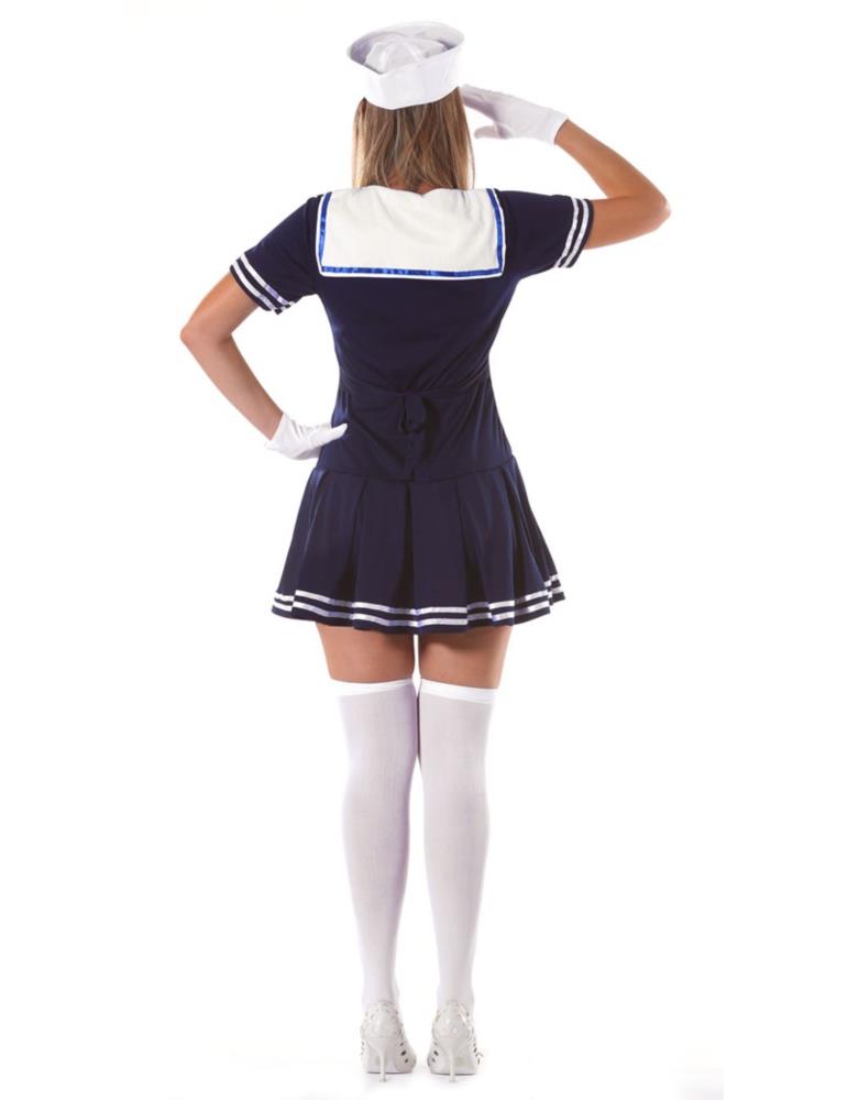 *sukienkę z charakterysycznymi marynarskimi akcentami