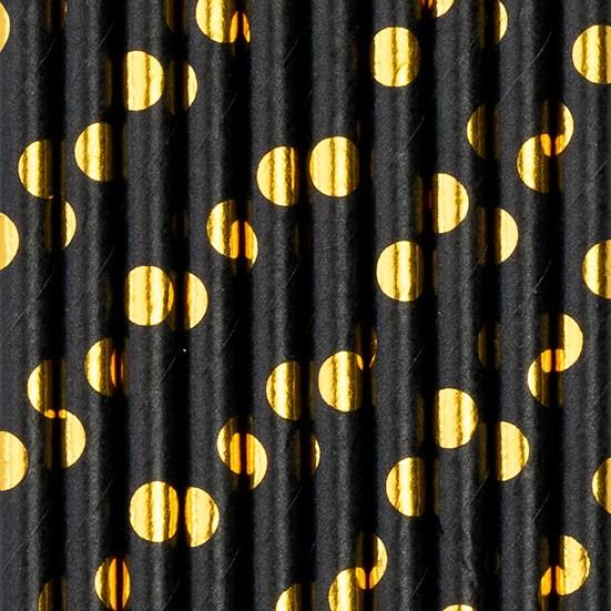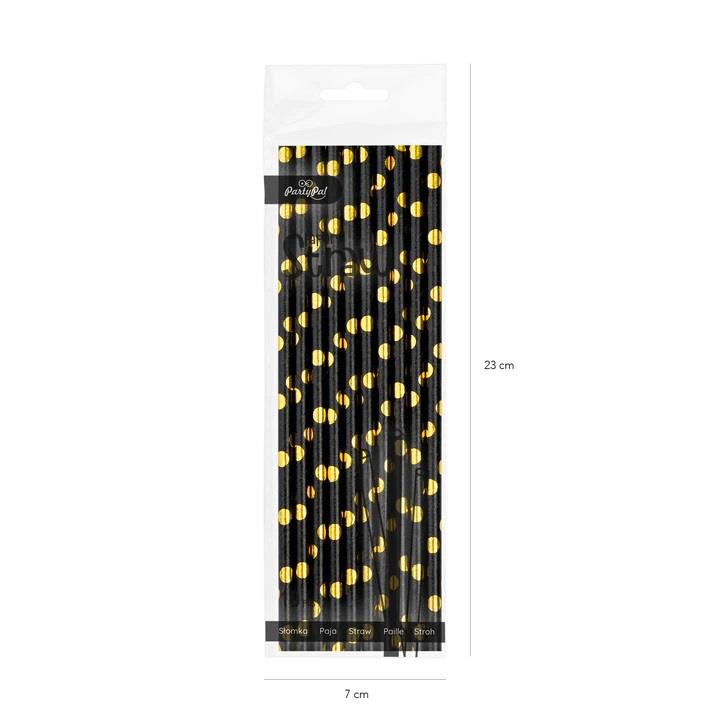 Słomki Czarne Złote Kropki 10szt 512366 19,5 cm papierowe sylwester przyjęcia