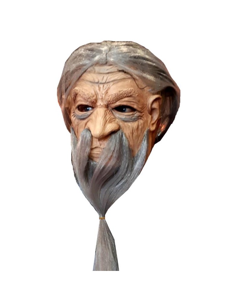 Profesjonalna maska lateksowa Czarnoksiężnika, Maga, Druida z długą siwą brodą i włosami.