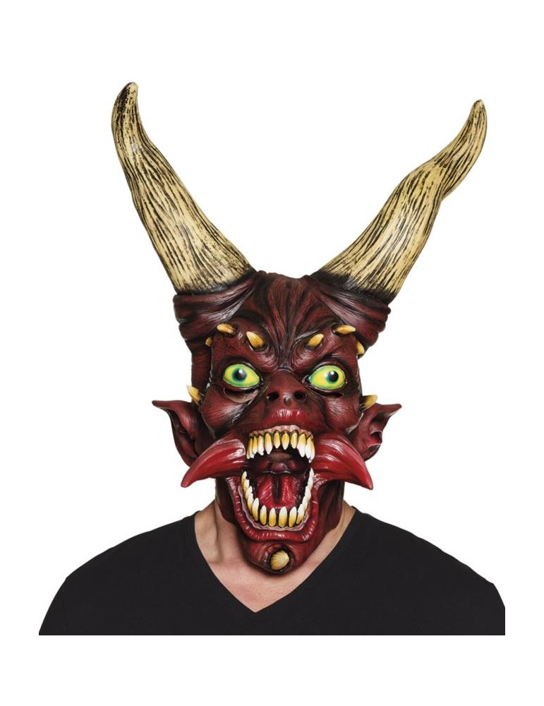 Maska wykonana z lateksu w kolorze czerwonym z rogami.