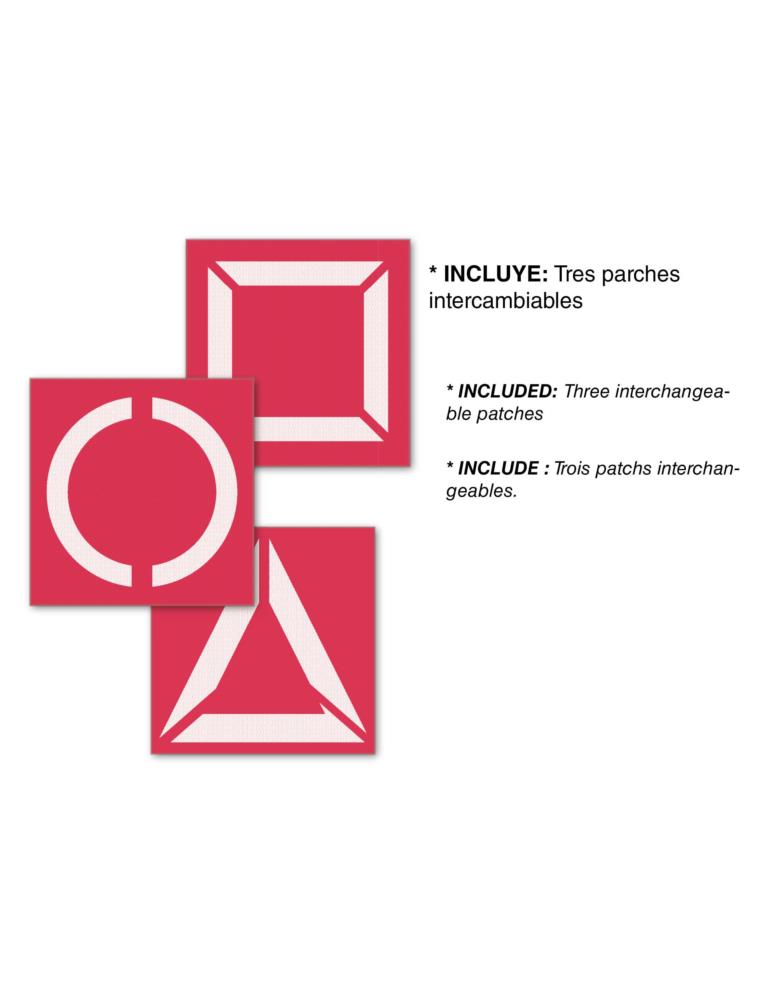 Kopmbinezon wyposażony w czarny pas, suwak oraz miejsce do naklejania emblematów na przodzie, do wyboru - trójkąta, kwadratu lub koła.